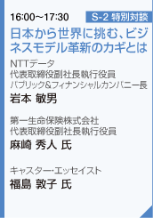 本対談では、本年、株式会社化と東証一部上場を実現するとともに、ベトナムなどアジアにおけるマーケット開拓に取組む第一生命保険株式会社様から、その立役者である麻崎副社長をお迎えし、同じくITサービス業界でグローバル経営を推進する岩本と共に、それぞれの視点からお客様満足度を高める経営革新にいかに取組むべきか議論を進めていきます。
